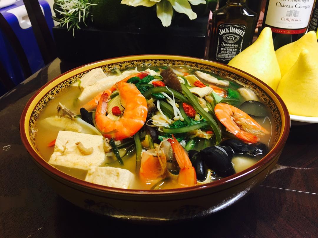 天气凉了,吃个热腾腾的火锅暖胃🐂🐓🦐☘️🍄