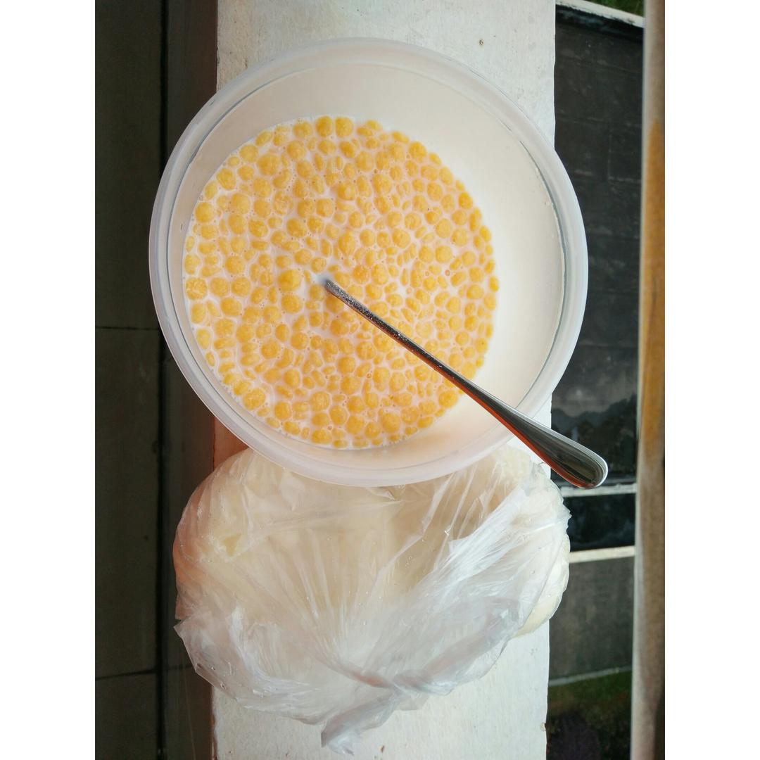 奶粉泡玉米片+两个叉烧包.我要忍不住了,所以,少食多餐,少食多...
