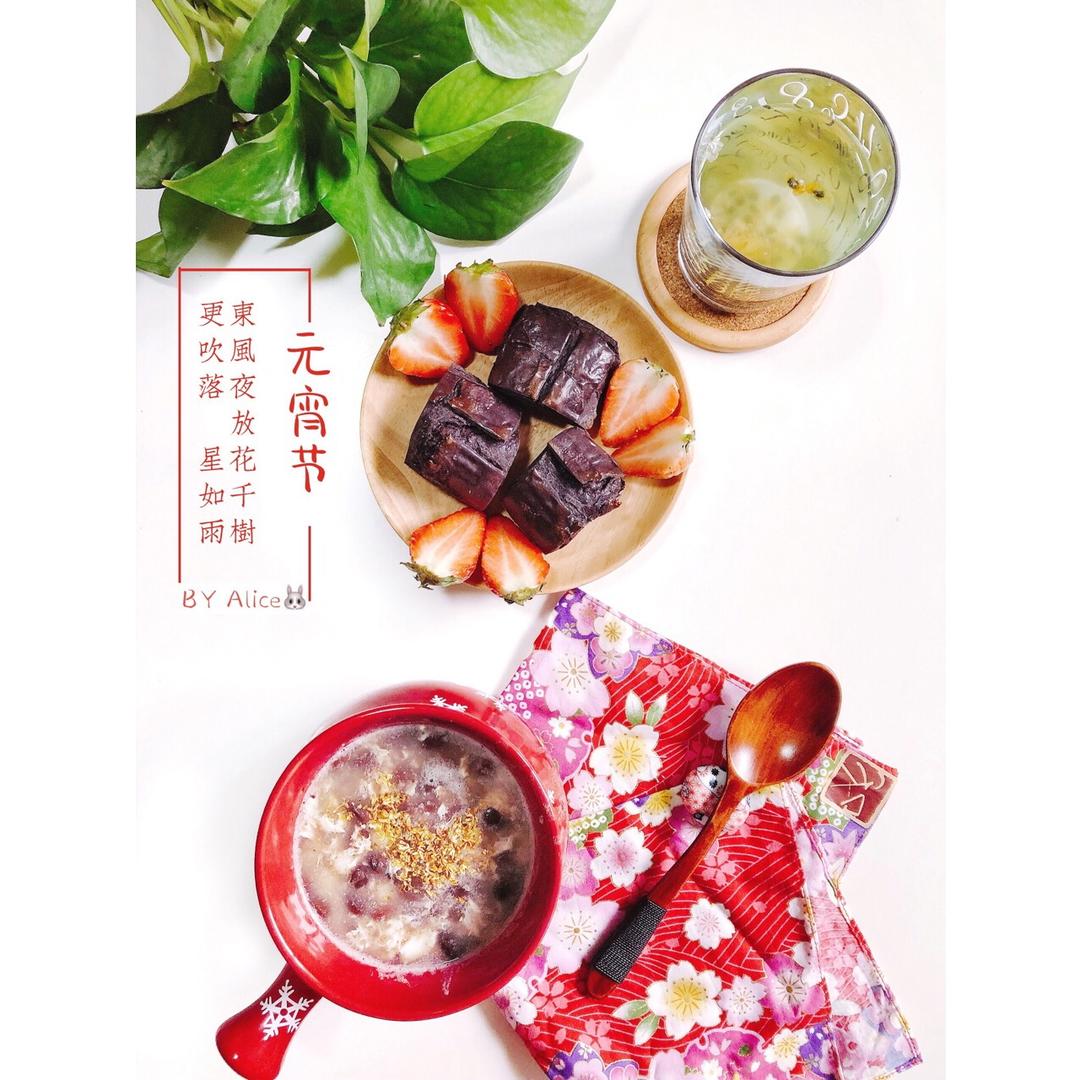 赤豆酒酿小小小圆子冲蛋+烤黑米年糕。