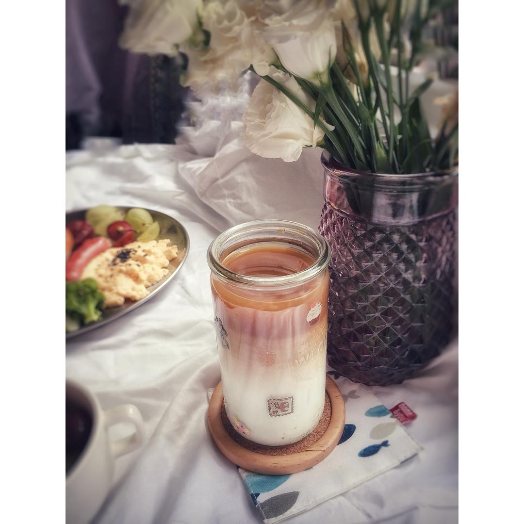 抱蛋煎饺+蓝莓奶昔。