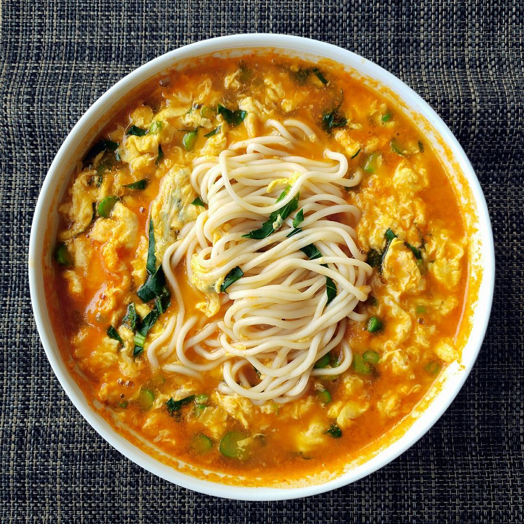 DAY17 最近挺忙的 早餐天天都在做 也许今天是头一次好好吃 早起冰箱里还有高汤 做个西红柿鸡蛋面,西红柿炒成酱放进高...