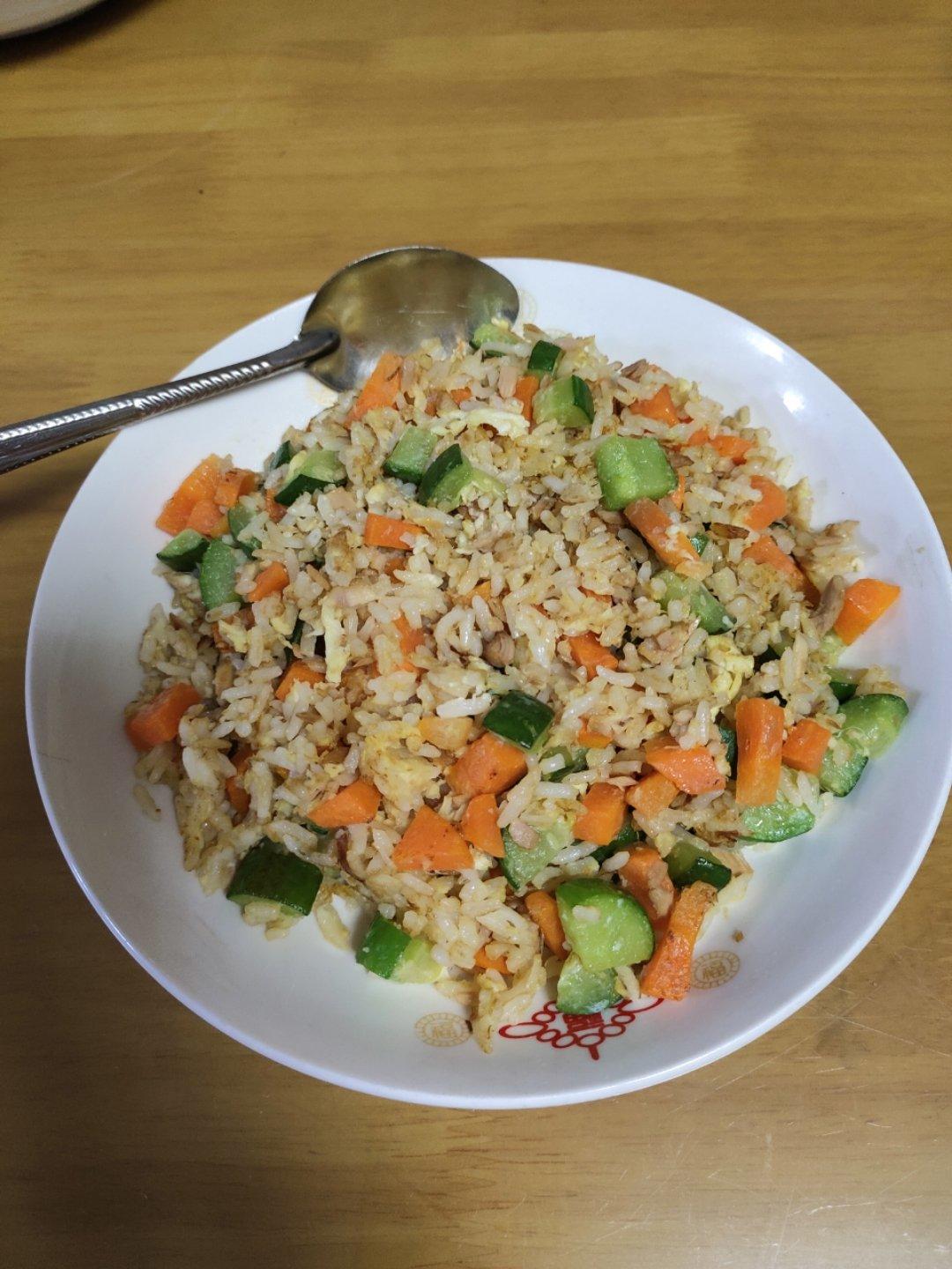 金枪鱼杂蔬炒饭,金枪鱼有点少,看不出来😂下次可以加点藜麦煮饭,更有营养😘