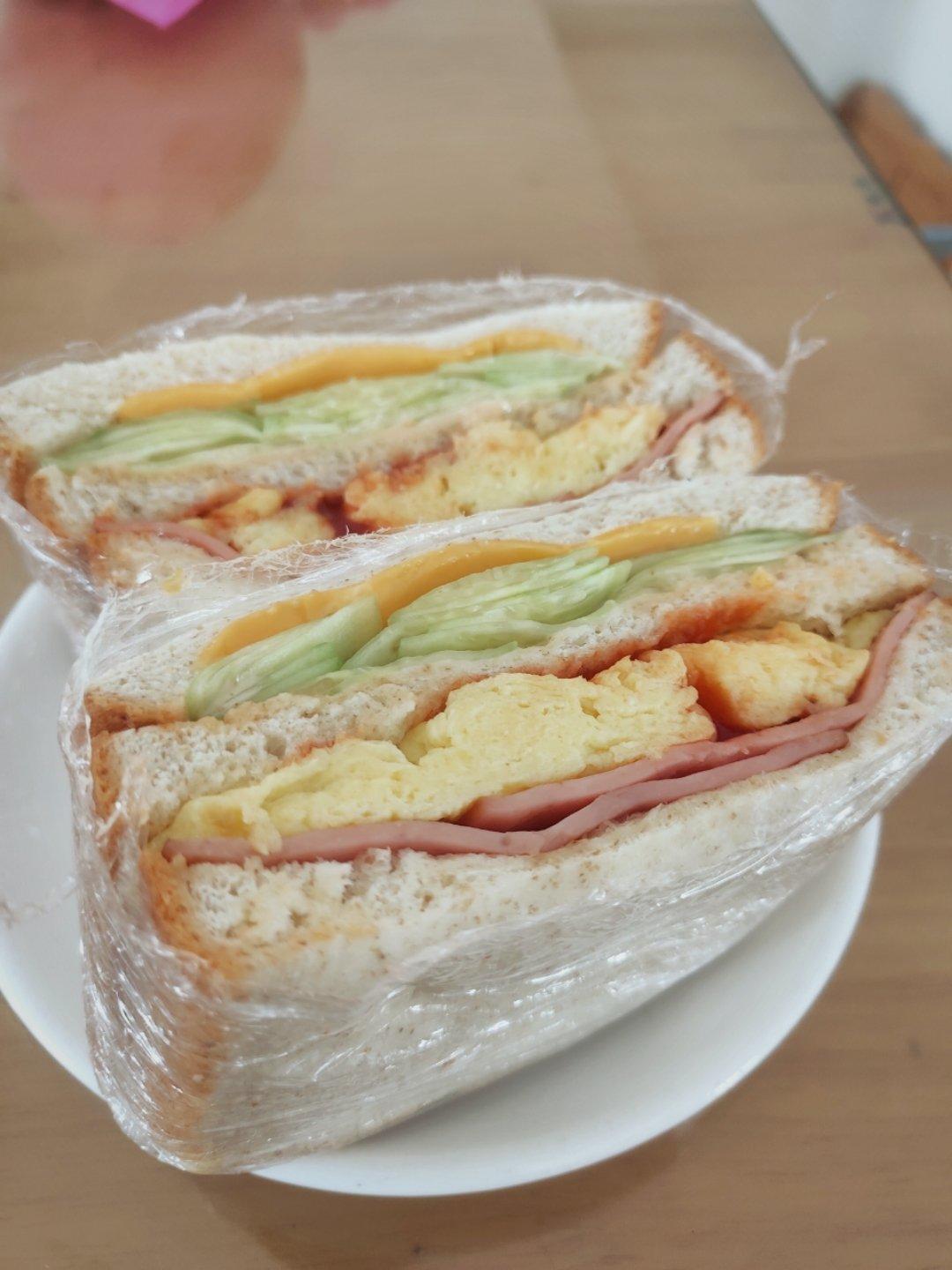 假期早餐🥪火腿青瓜滑蛋芝士三文治