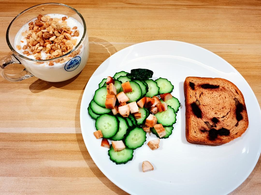 黄瓜鸡胸肉,全麦大列巴,酸奶燕麦!