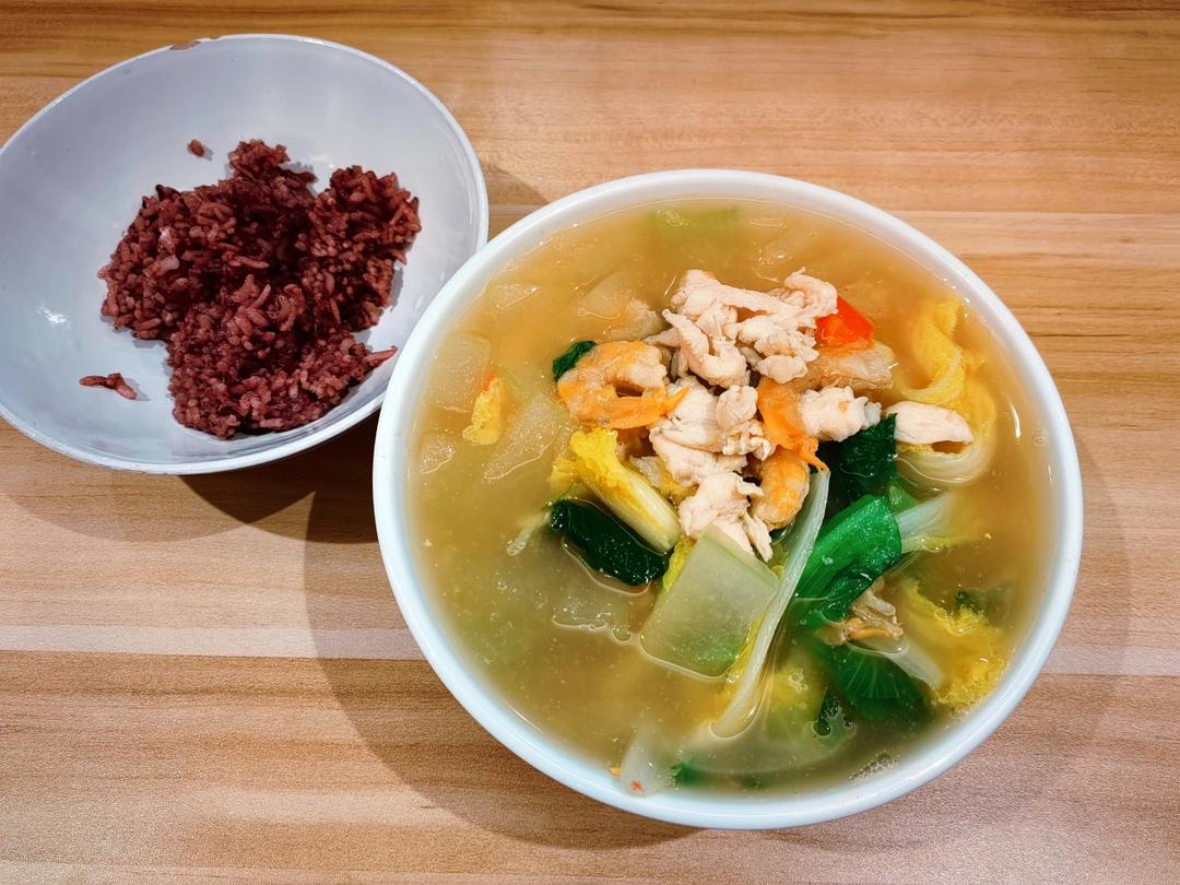 冬瓜鸡肉三鲜汤,泡饭!