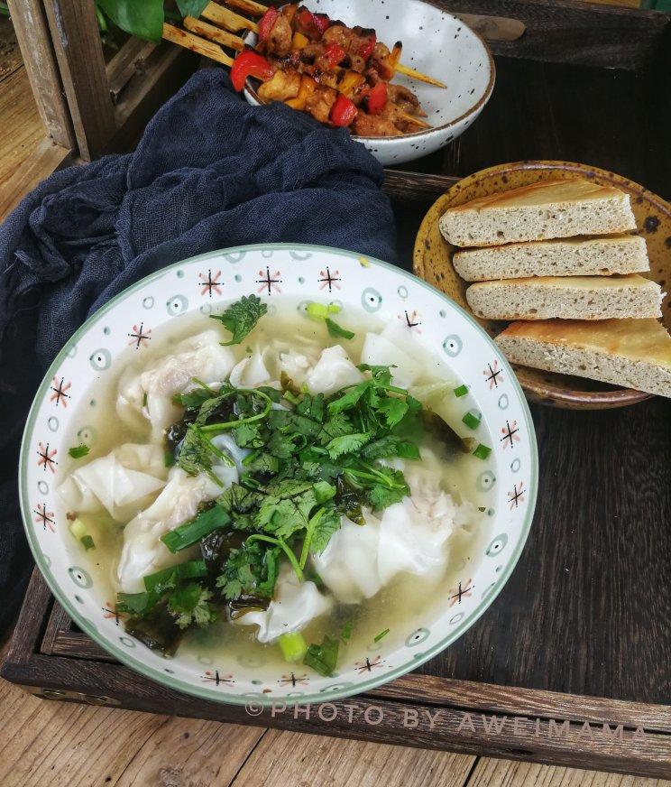 早餐打卡NO60:鲜肉小馄饨、杠子馍、烤鸡肉串