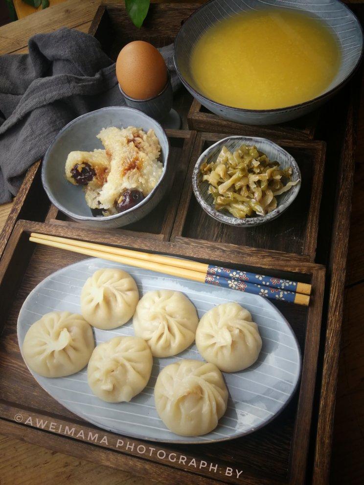 小笼包、粽子、玉米碴子粥