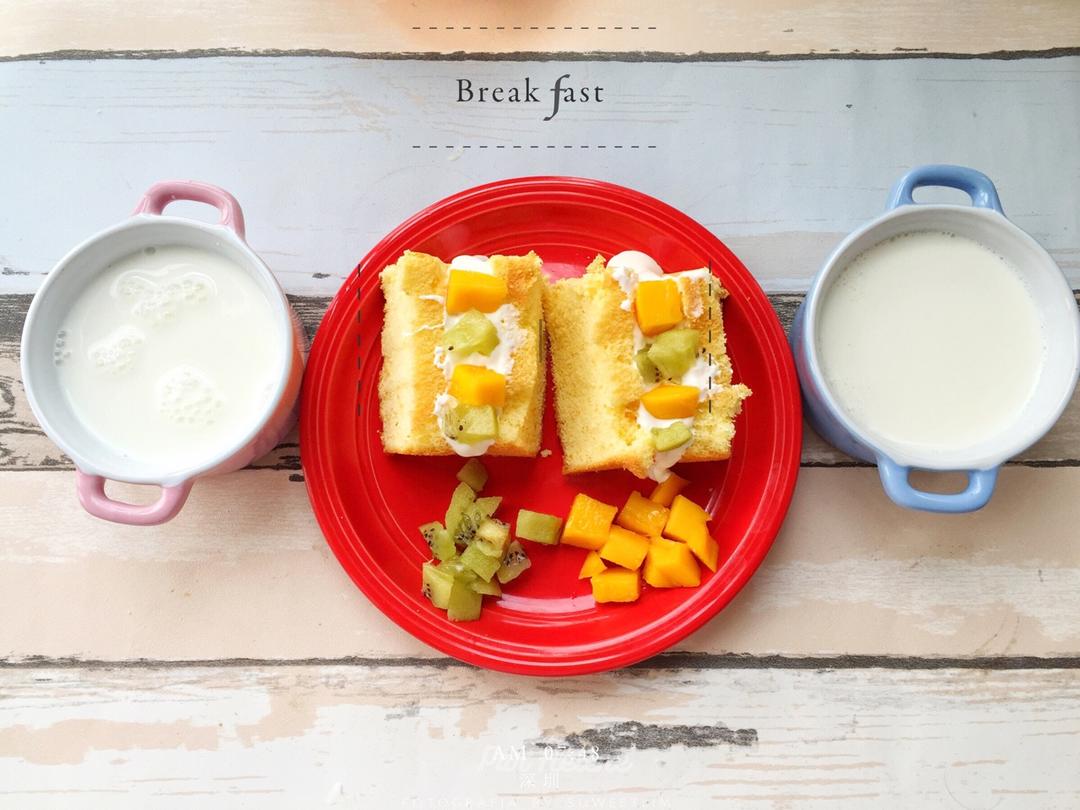水果戚风三明治➕芒果➕牛奶➕猕猴桃,猫宁3~ #早餐•...