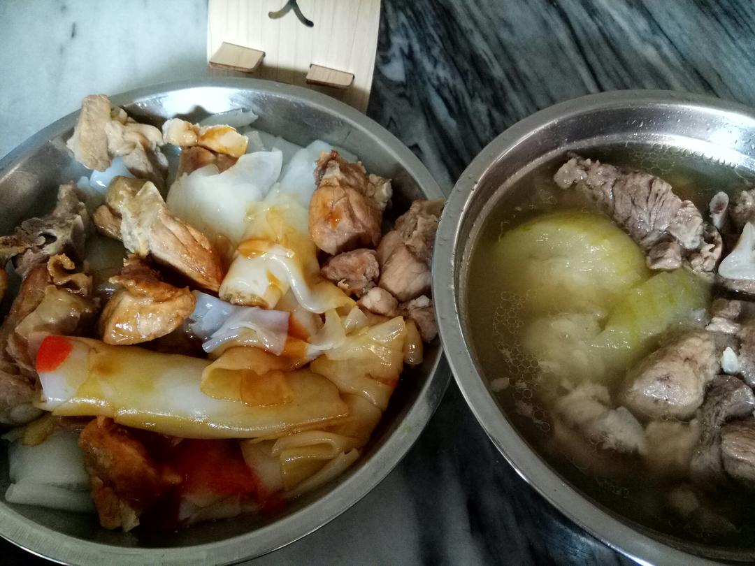 中午一个人,懒虫又复苏了;排骨搭猪肠粉;节瓜煲鸡爪猪脷汤~