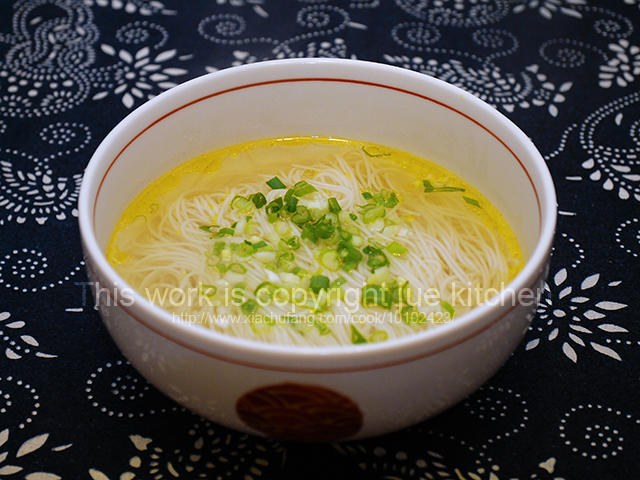 用清鸡汤煮的素面,只加了一点点盐调味,就已经非常鲜香美味了。