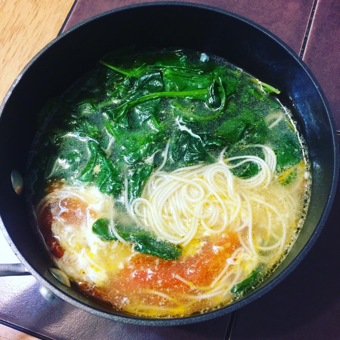 嫩菠菜面一锅……