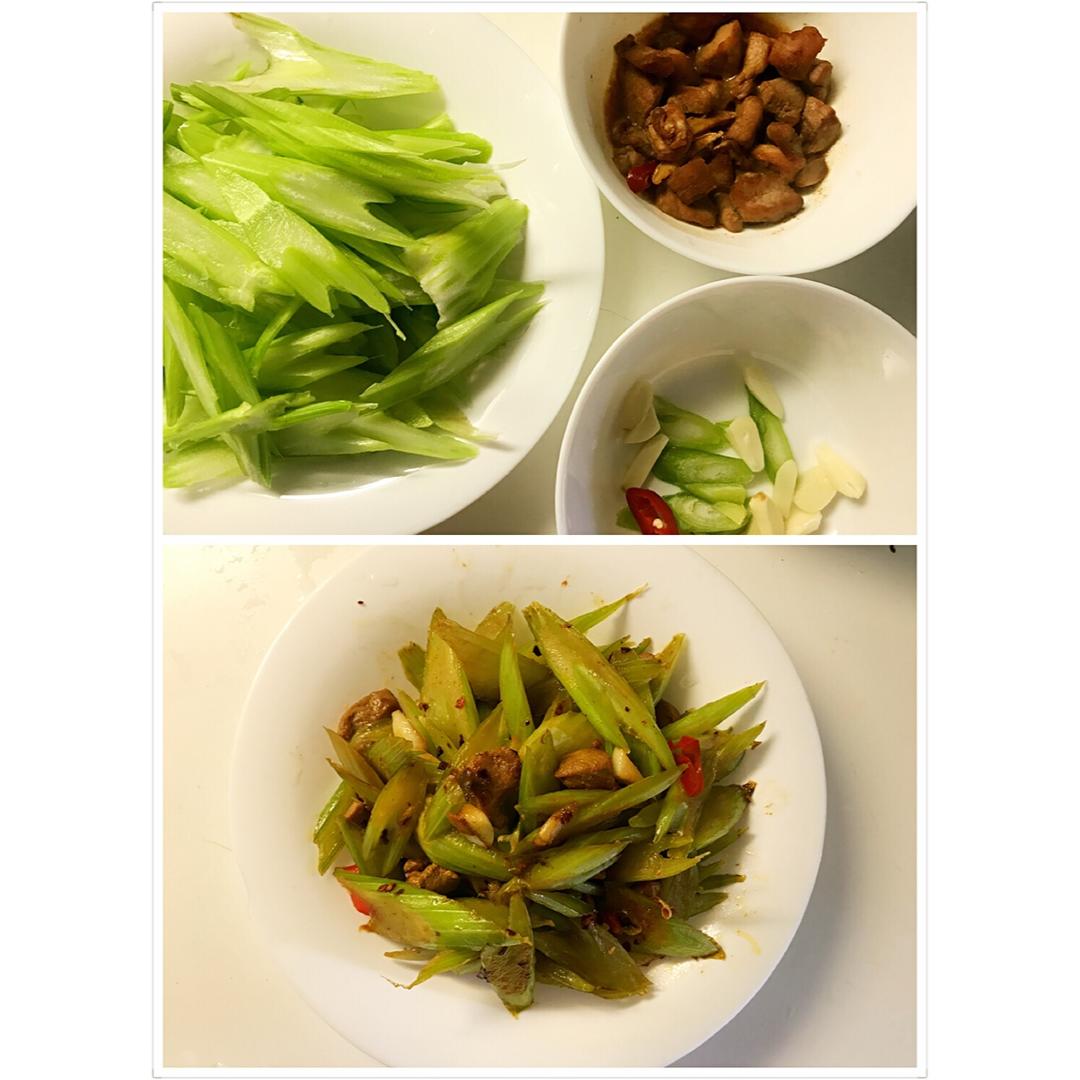 芹菜炒肉~最后放了一勺老干妈,这不算作弊吧~🤣