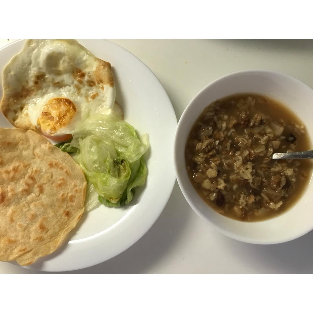 今天的极简早餐费了点功夫,煎了鸡蛋,煮了白粥~