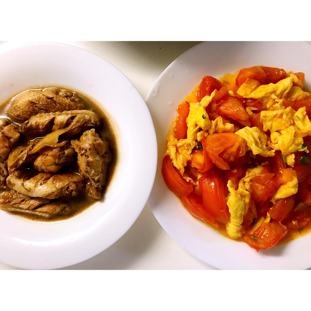 可乐鸡翅+西红柿炒蛋~今天真的是吃太多了