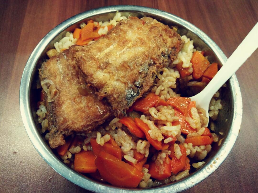 今天略忙。没来得及上传。素抓饭配红烧带鱼
