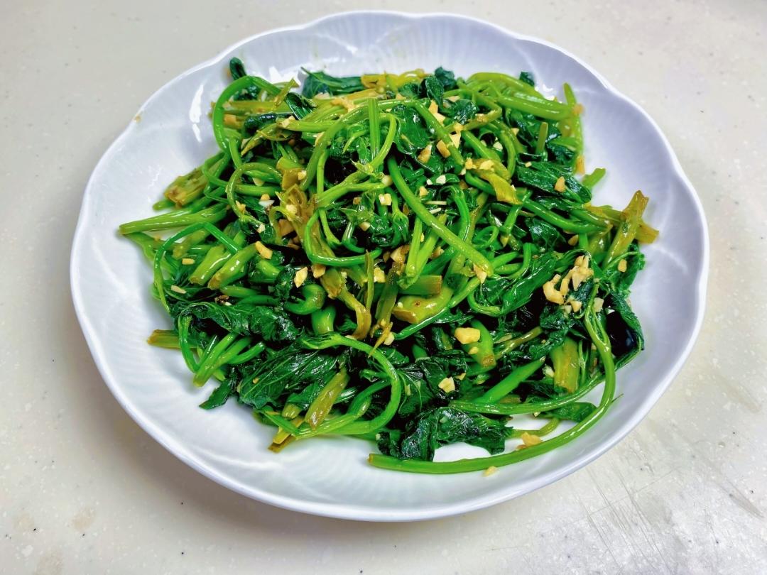 蒜蓉炒红薯叶有着长寿菜的号称,所以它是一道既健康又清脆爽口美味的菜