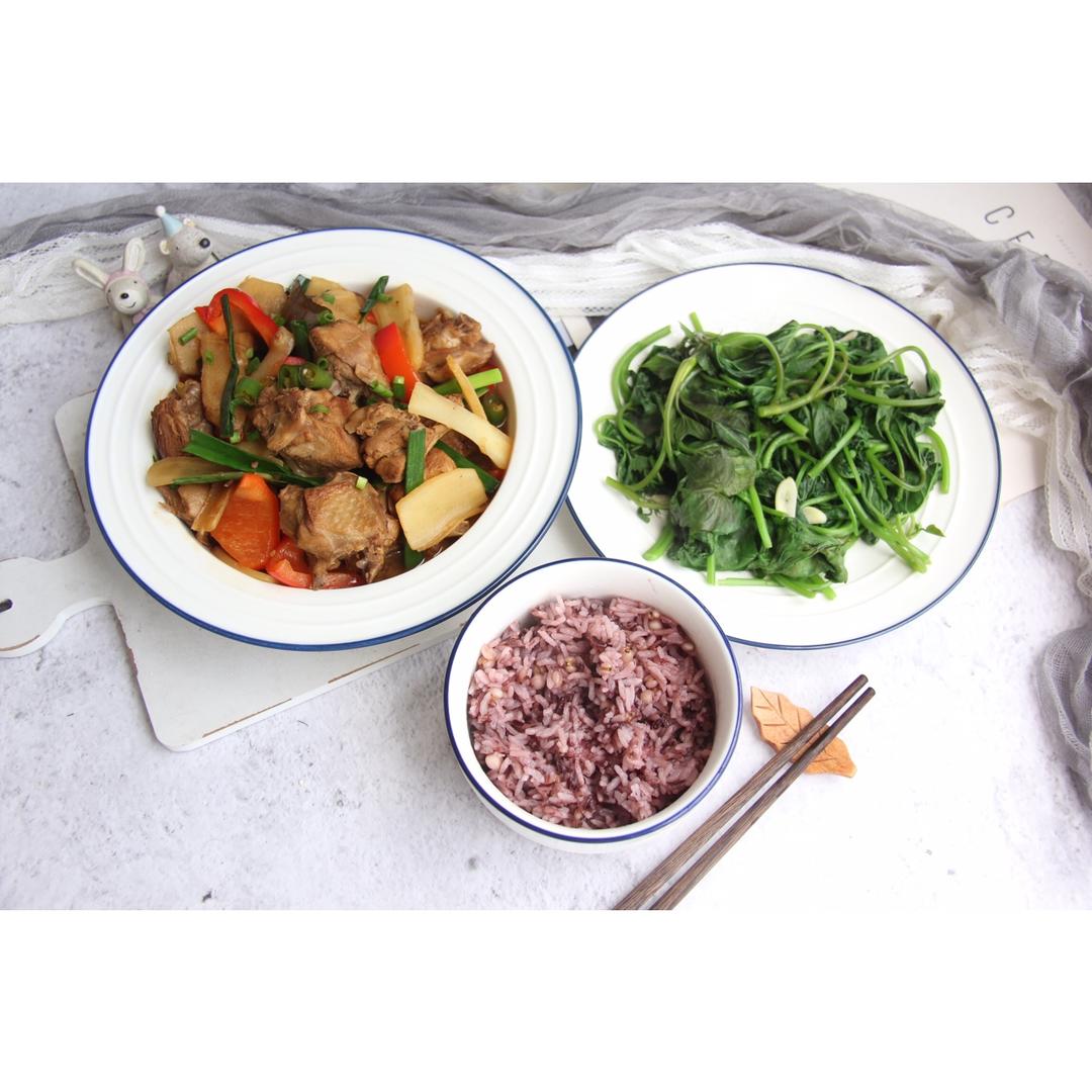 今日午食:仔姜鸭➕清炒地瓜叶