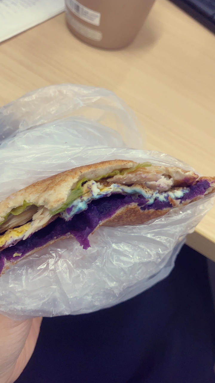 自己做的全麦鸡蛋鸡胸肉紫薯三明治,吃了一次唐九的以后念念不忘,觉得太贵了决定自己做,太好吃了😋😋😋😋😋,