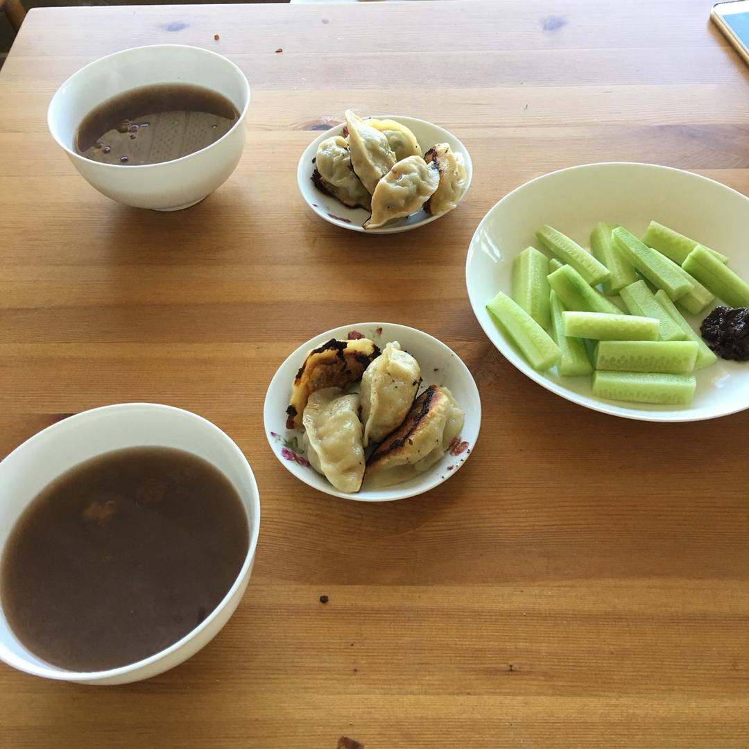 八宝粥,煎饺,黄瓜