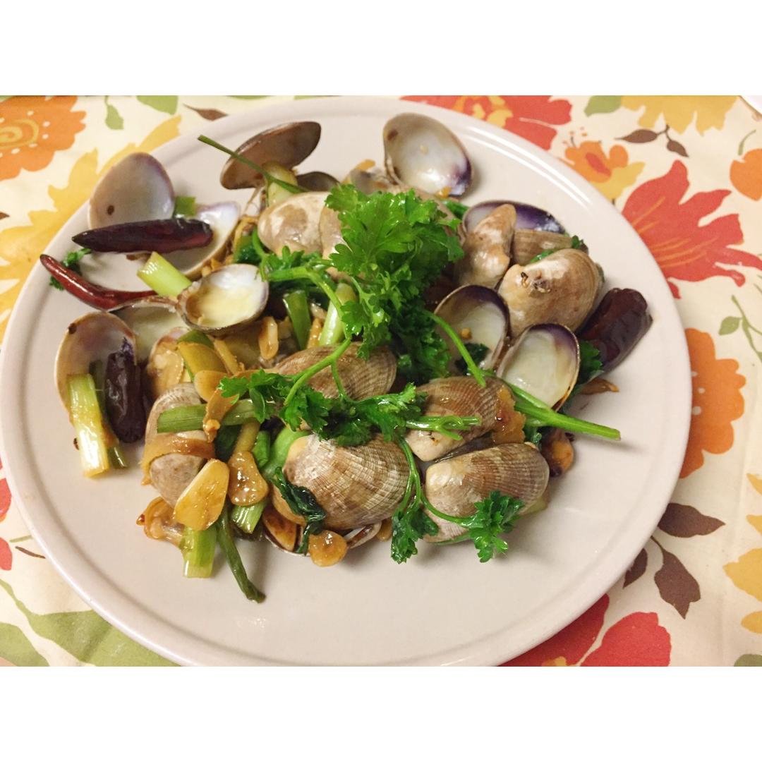 谢谢方子,虽然我没找到九层塔换成了欧芹,花甲味道很鲜,只去一半壳的结果就是一炒肉肉全堆进中间被盖住啦。照相照不粗来,真的...