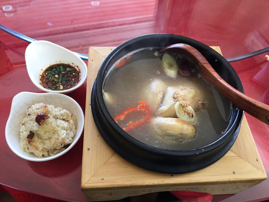 很喜欢吃的参鸡汤삼계탕~元奶奶包饭家的,吃一份够一天^^