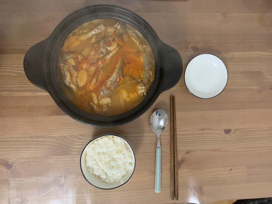 从家拿回来的明太鱼和冻豆腐剩一点儿一直没吃了,这么做也很好吃啊😋跟家里做的鲜明太鱼豆腐汤味道挺像的#晚餐•2019年5月...