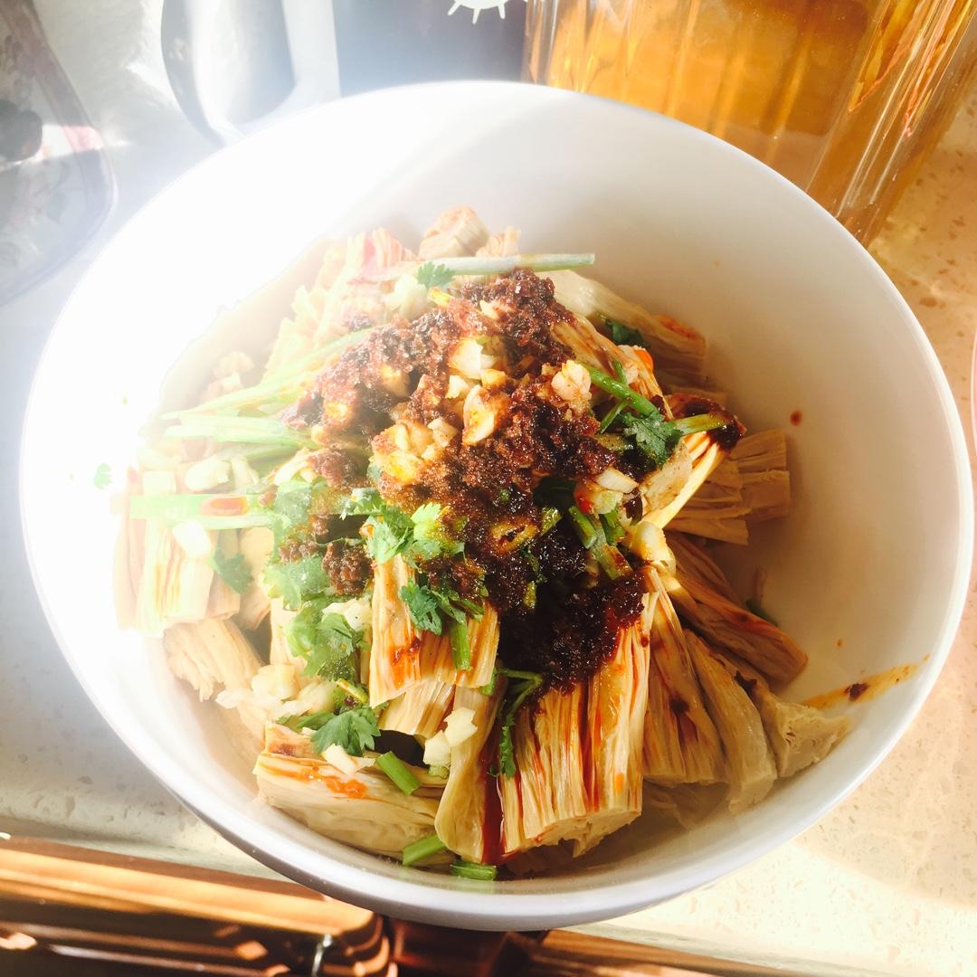 加了点辣酱~解决了冰箱里的陈年老腐竹~