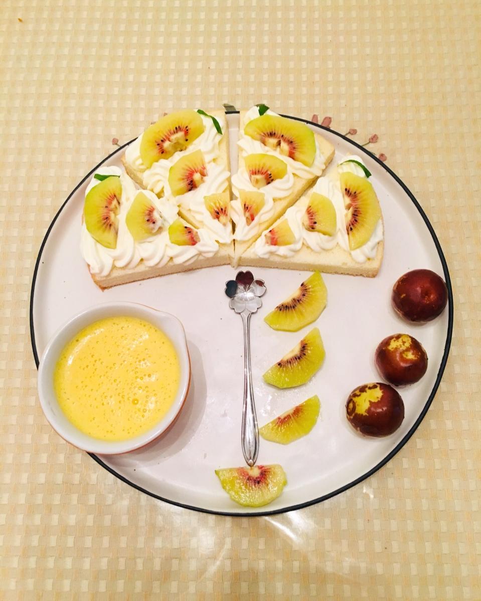 早安……奶油水果蛋糕🍰黑糖奶茶……生活太苦,吃点甜吧!