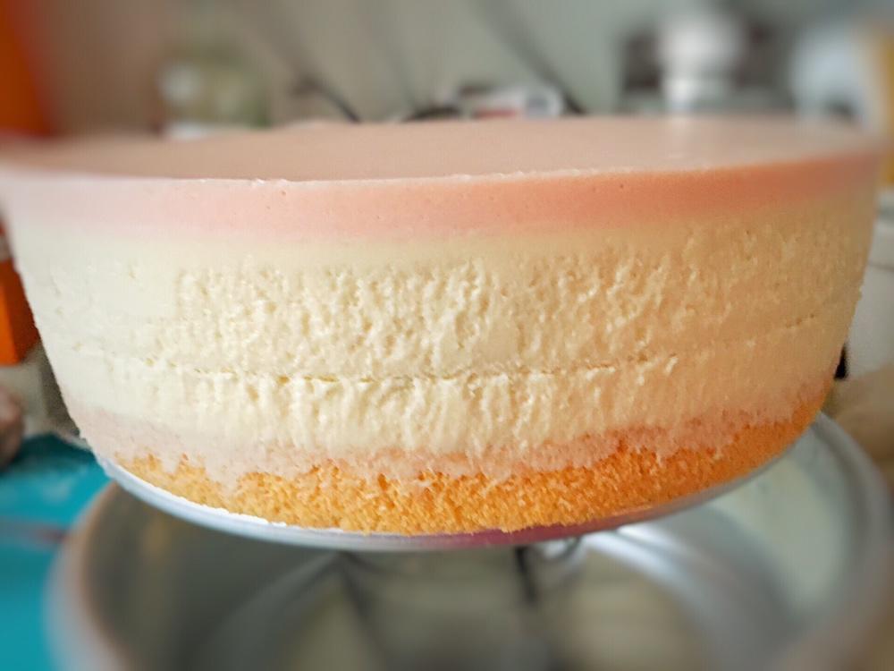 八寸蜜桃慕斯蛋糕🎂……从侧面看好有食欲😋