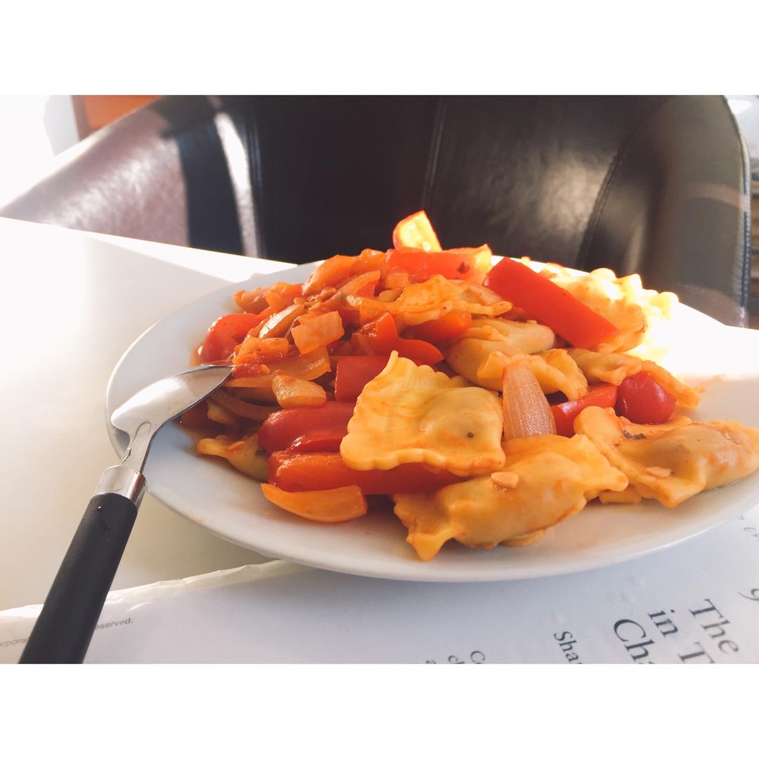 Beef and red wine Italian Ravioli with onion and pepper in t...