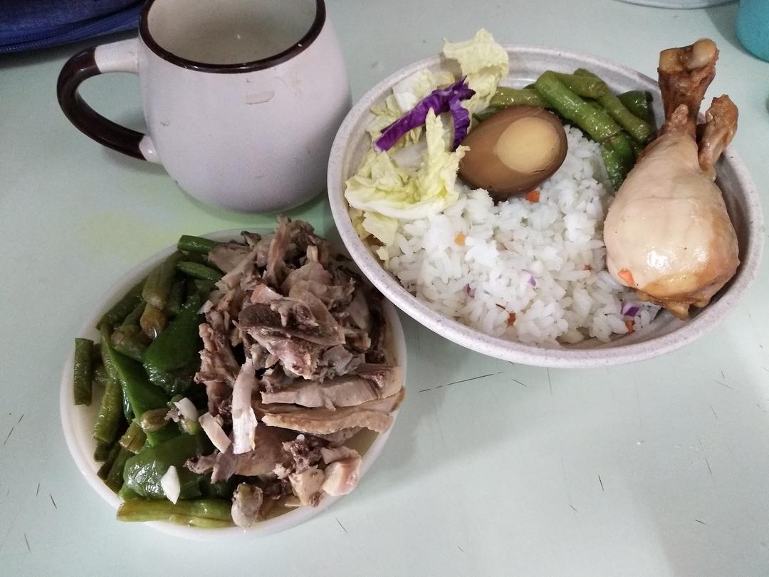 肉沫豆角+白斩...