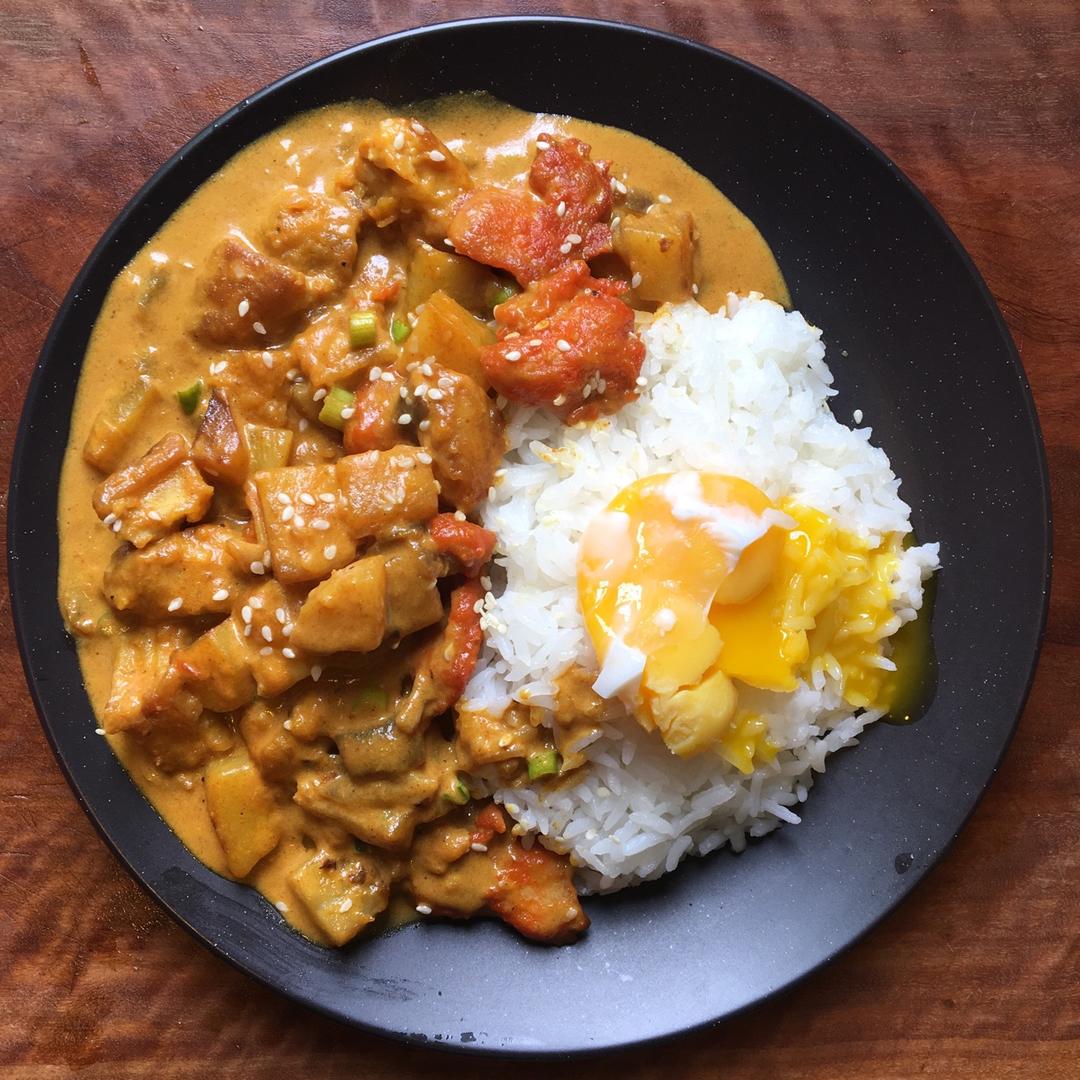 咖喱鸡肉溏心蛋饭