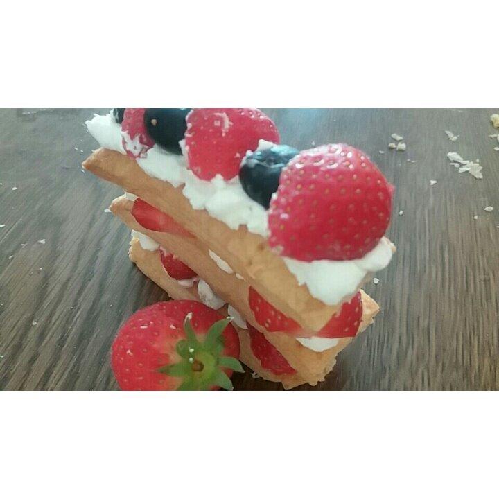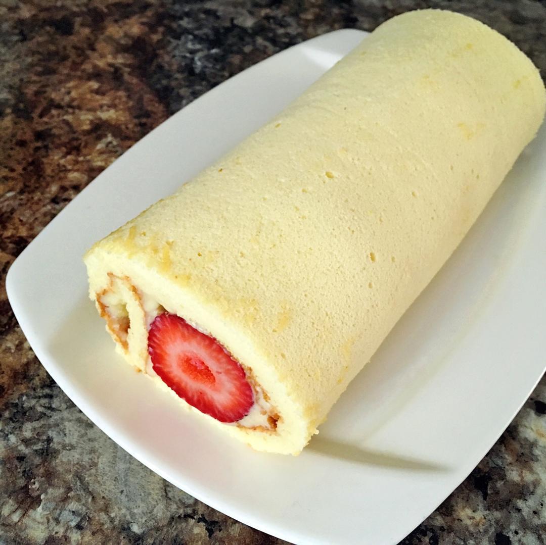 草莓太大 不是很好卷~ 355F 18分钟 毛巾面出来得还不错 这是给妈妈母亲节做的礼物❤️ #早餐•2017年5月14...