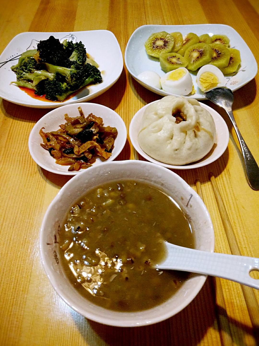 早安!🍭娜姐&早餐🍭绿豆粥、大白菜笋干肉包。