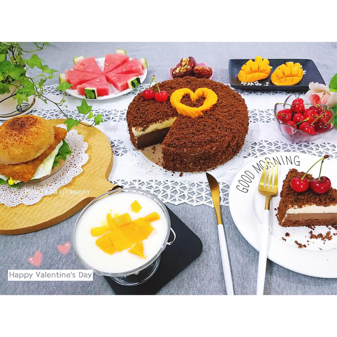 今天的日子怎么能少了蛋糕,双层巧克力芝士蛋糕,主要用了安佳淡奶油和安佳...