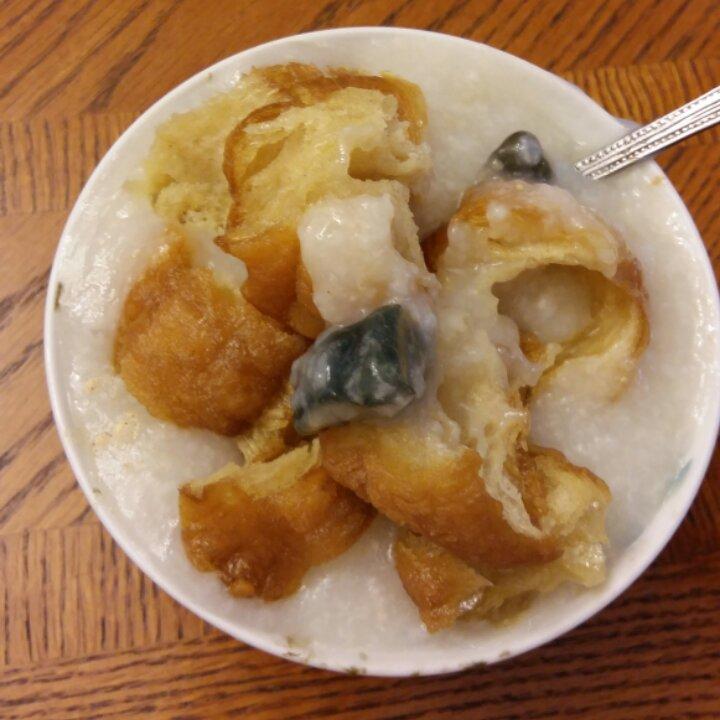 皮蛋瘦肉粥+油条。