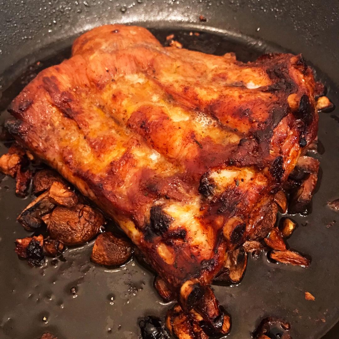 黄油蘑菇烤猪肋排~用了425℉,30分钟。