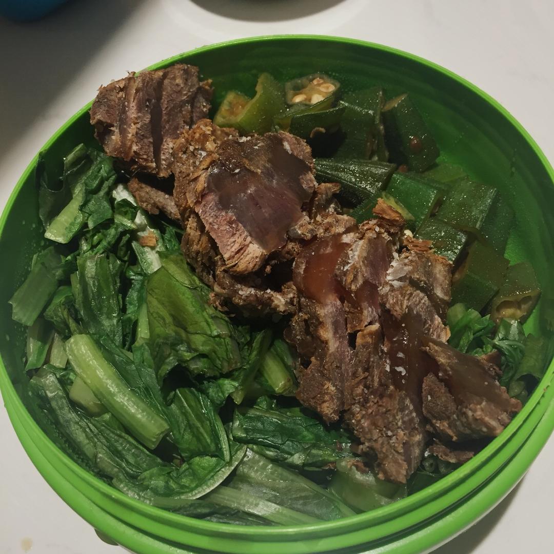 蔬菜:酱爆秋葵、蒜泥油麦菜