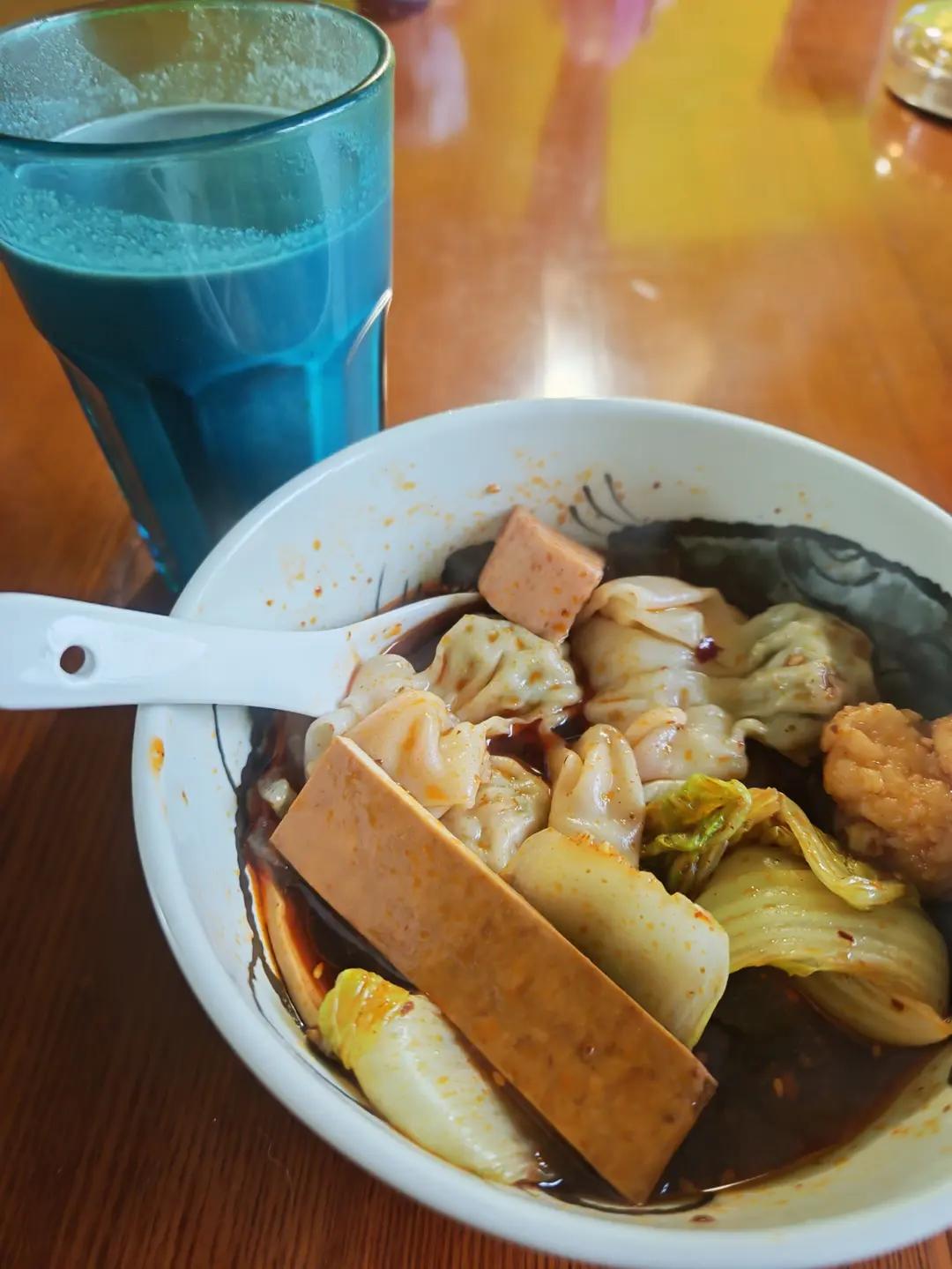 下雨的冬天,来一碗热气腾腾的抄手!加了点虾滑午餐肉豆干苕皮娃娃菜。。。...