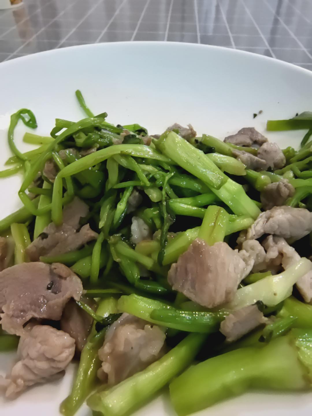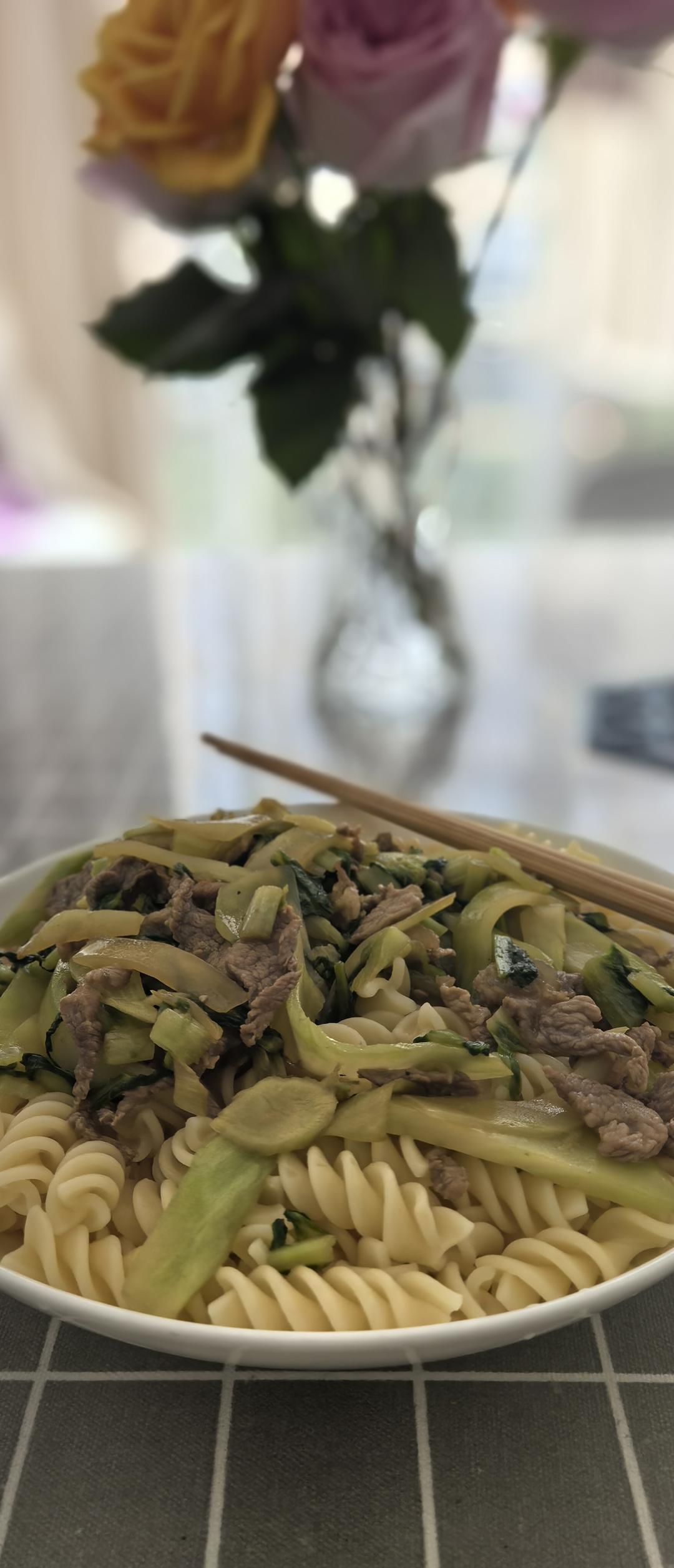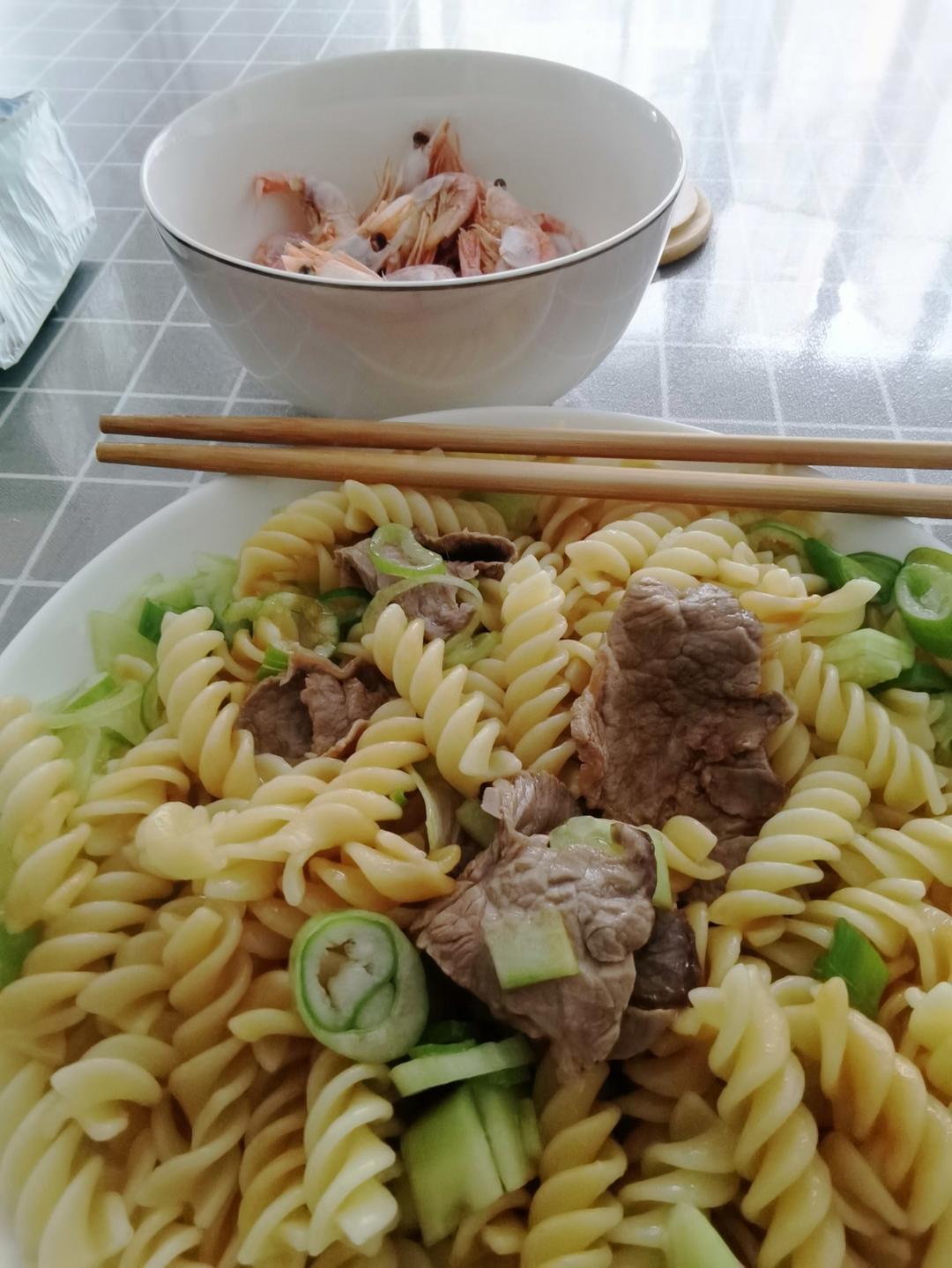 快手午餐,煮螺丝意面的同时切肉和菜,昨天附近超市买了颗莴笋,就做了个莴笋...