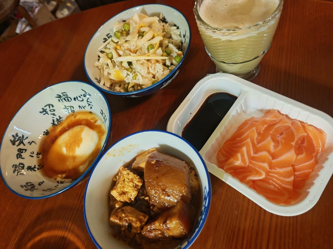 茶油蒸蛋,青豆笋丝焖饭