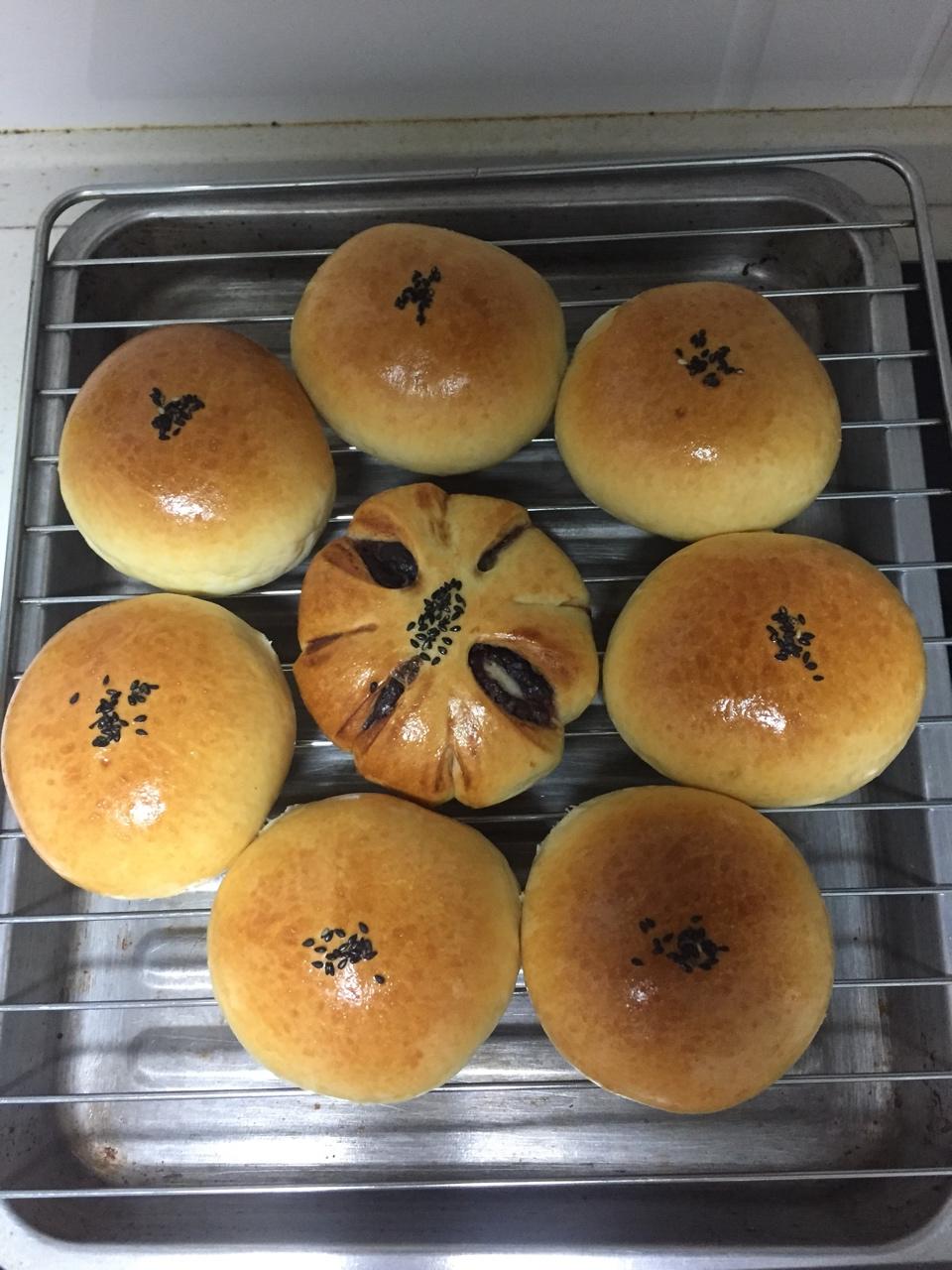 加了自己做的红茶苹果馅 中间那个是豆沙的 刷了点蛋液 嘿嘿 早饭有着落了