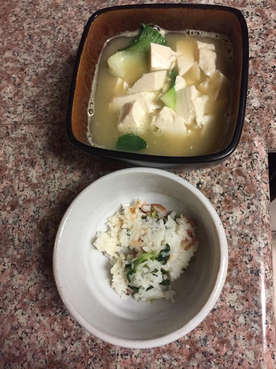 菜饭 青菜豆腐汤 用鸡汤做汤底 起锅后撒点白胡椒 非常好喝