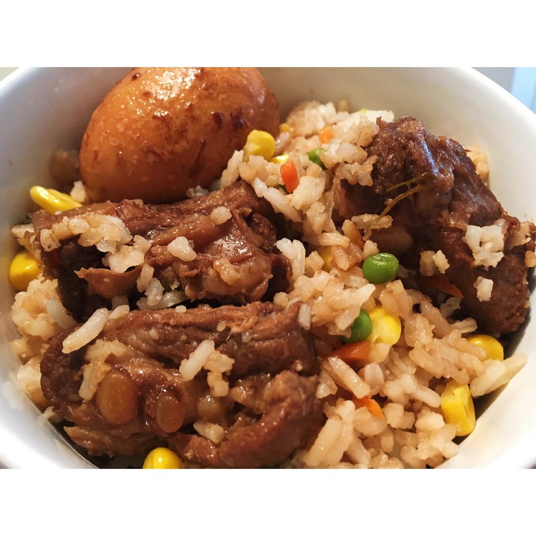 昨天的排骨,今天焖什锦饭还卤了个蛋~喷喷香😋😋