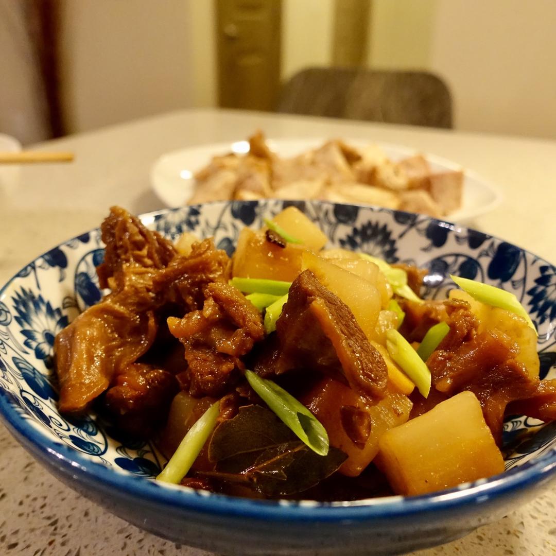 味道不错,肉我是炖的,就是炖了两个小时也不太😔没有柱侯酱用的蚝油,也不知道味道差多少…