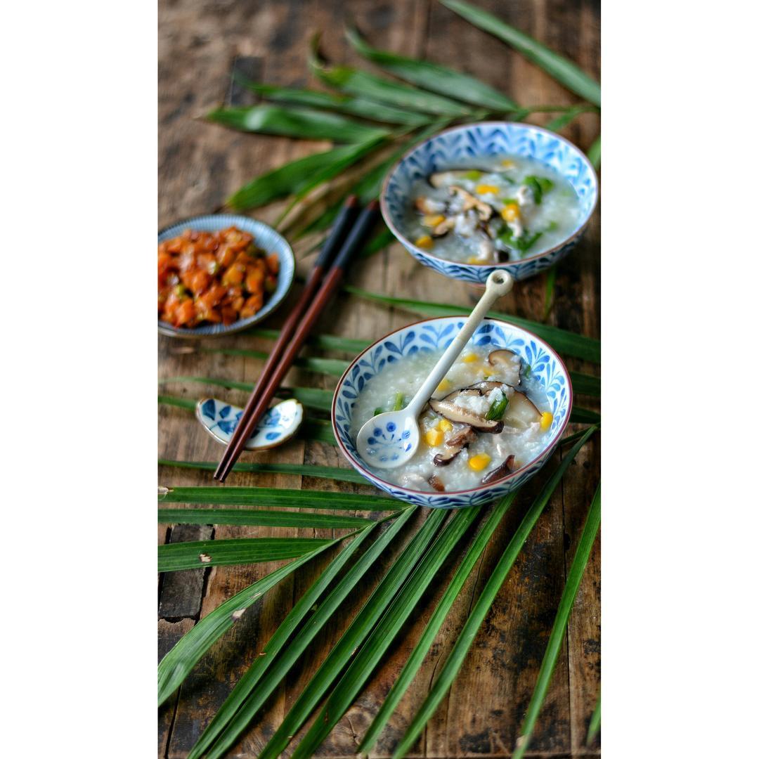 一个个把粥都拍得那么美,我是打酱油的😜😜😜买的香菇不知道是不是被我扔掉了没有找到,只好放了杏鲍菇,没有肉末用鸡肉代替了🤣...