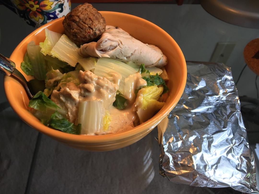 一大碗🤣白菜生菜➕hummus和芝麻酱,herb rosted turkey breast,gardien的vegen ...