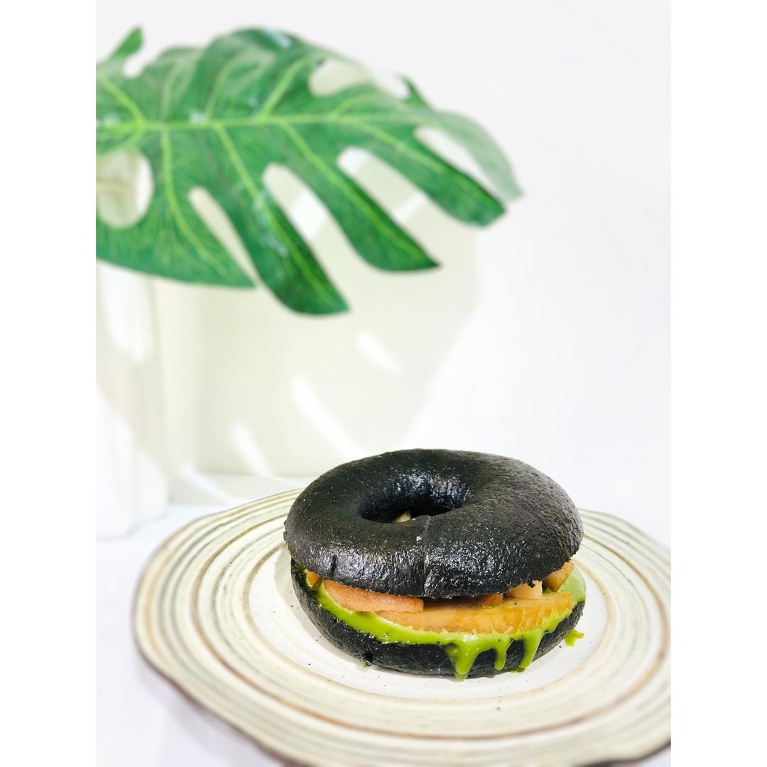 No.49 抹茶奶酱水蜜桃全麦竹炭贝果三明治 周日Brunch🍽