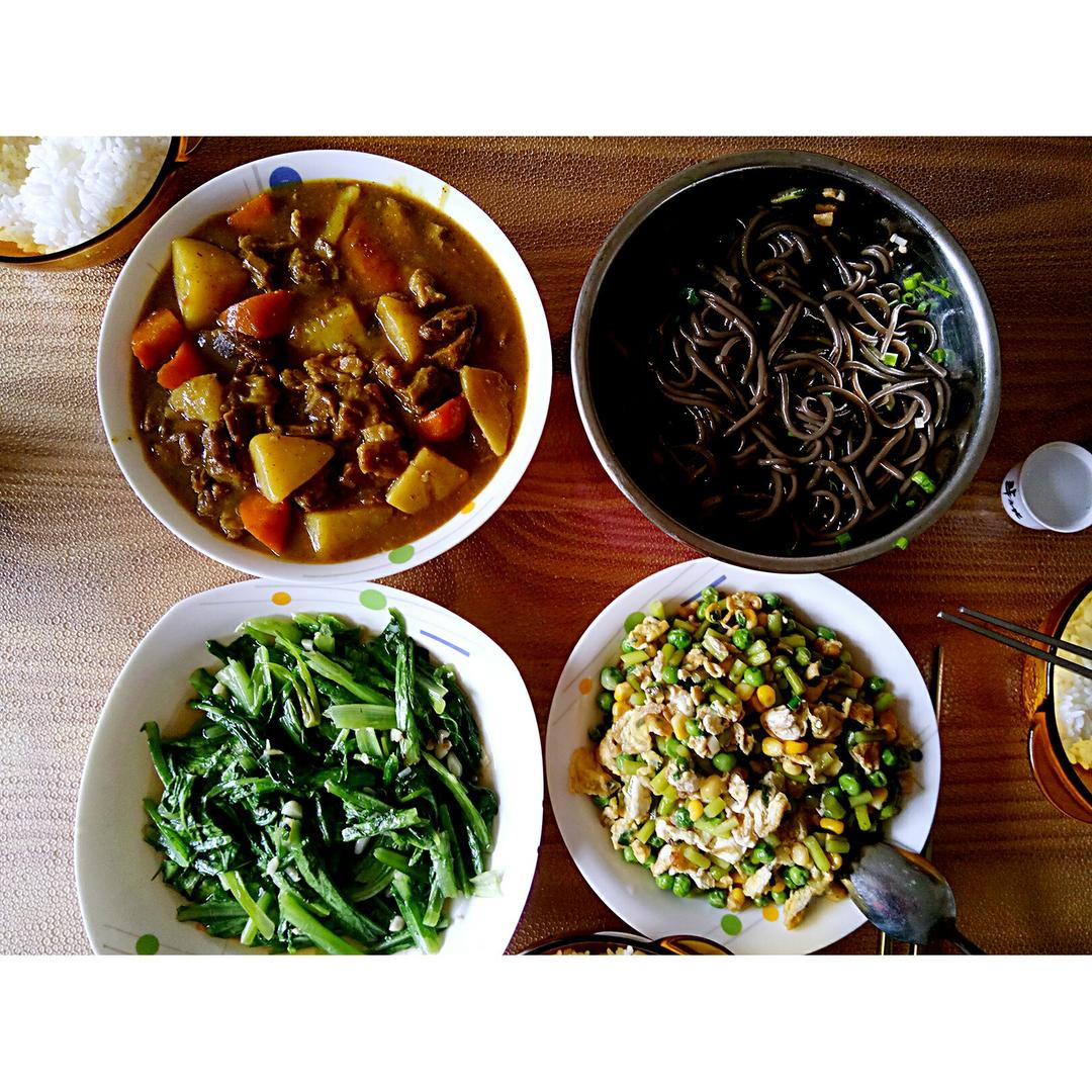 午餐喽!好久没做咖喱牛肉了[色][色](儿子竟然吃了两碗饭,长肉的节奏吗?[呲牙][呲牙])...