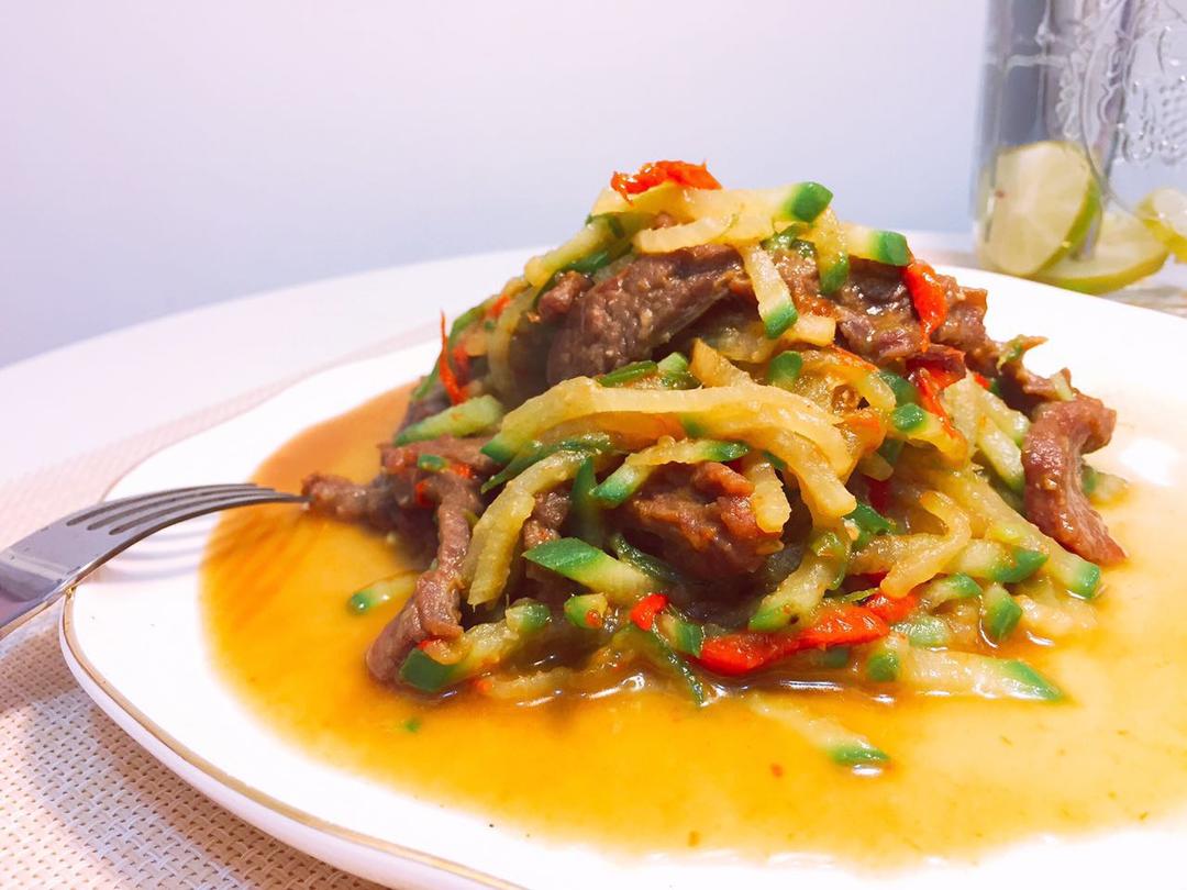 可惜超市切好的牛柳无比粗大,小七刀工不佳,萝卜丝也不瘦🙈这道...